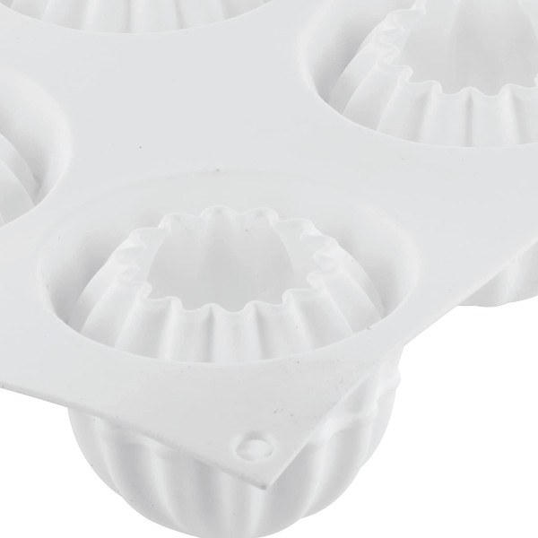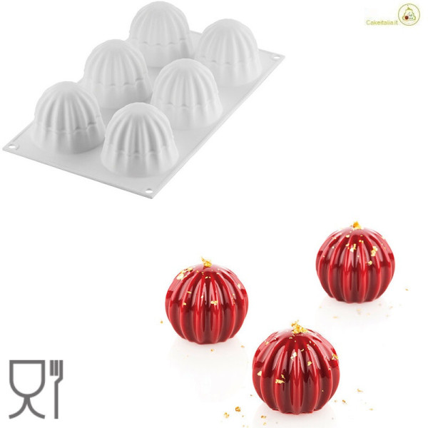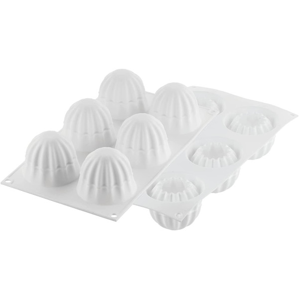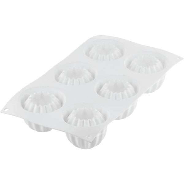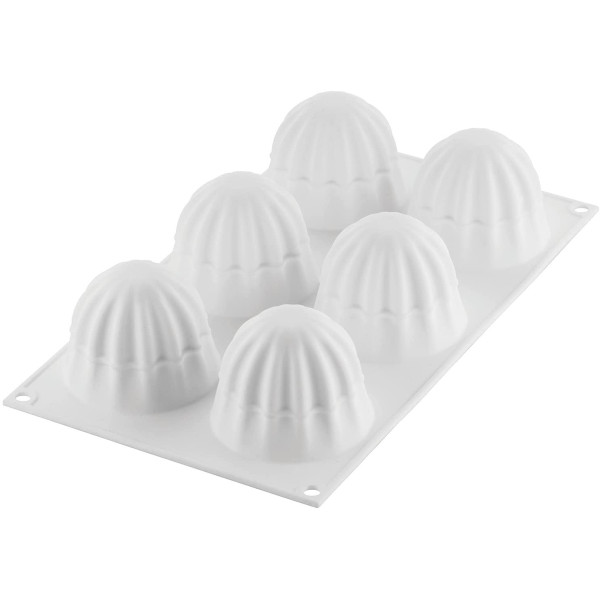Stampo Supernova per 6 monoporzioni a semisfera, con un delicato decoro in silicone (linea Top white, effetto 3D) di diametro 6,4 cm e 105 ml, ideale per semifreddi, tortine e dolci monoporzioni