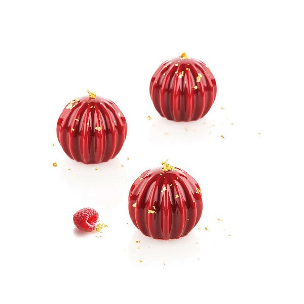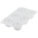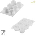 Stampo Supernova per 6 monoporzioni a semisfera, con un delicato decoro in silicone (linea Top white, effetto 3D) di diametro 6,4 cm e 105 ml, ideale per semifreddi, tortine e dolci monoporzioni.