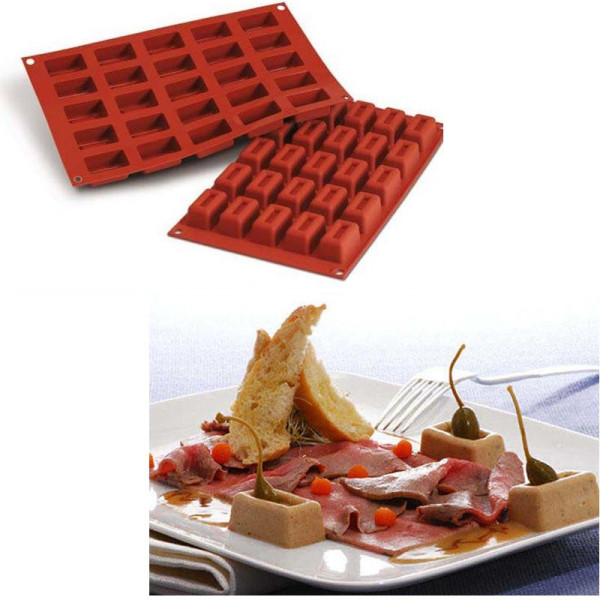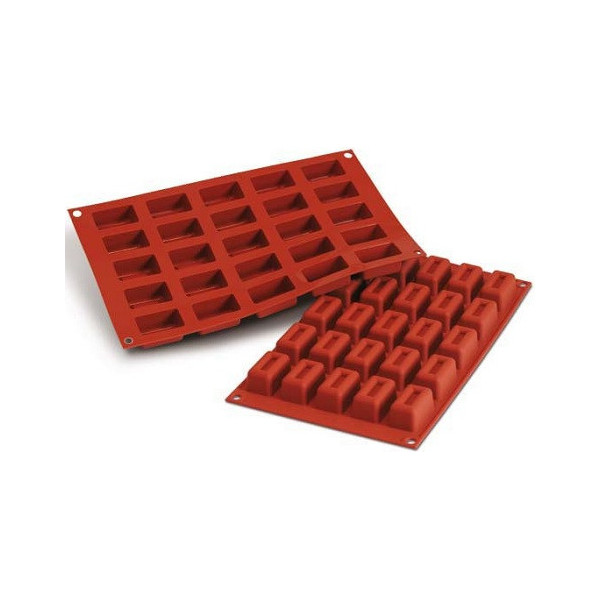 Stampo savarin a forma di lingotto a base rettangolare in silicone flessibile e antiaderente realizzato in 100 % silicone liquido da Silikomart. Può essere messo direttamente dal forno al frigorifero e viceversa.