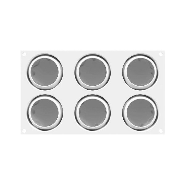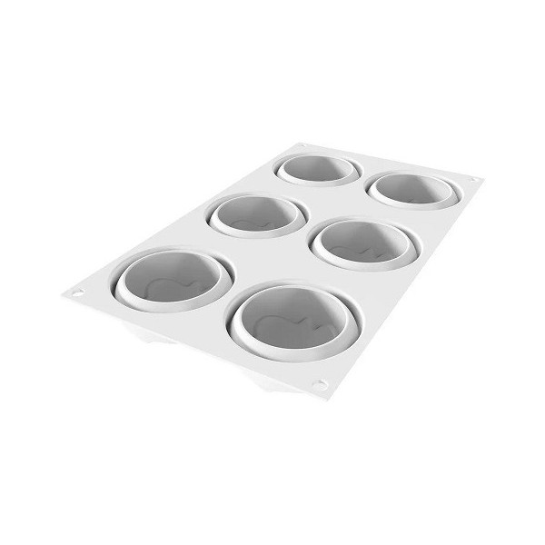 Ocean 100 ml da Silikomart: stampo in silicone bianco per 6 tortine a forma di semisfera con effetto tridimensionale dal diametro di 7,0 cm ed altezza 3,00 cm