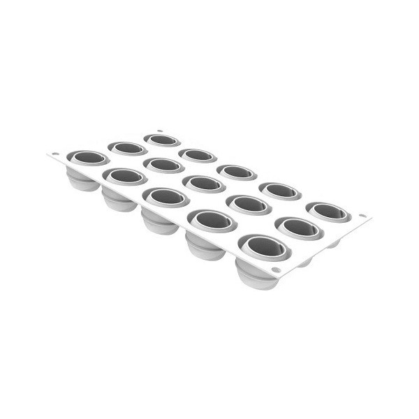 Stampo ideale per dolci, semifreddi, mousse e monoporzione grandi o mignon, dalla forma morbida e liscia ovale, anche salate.
