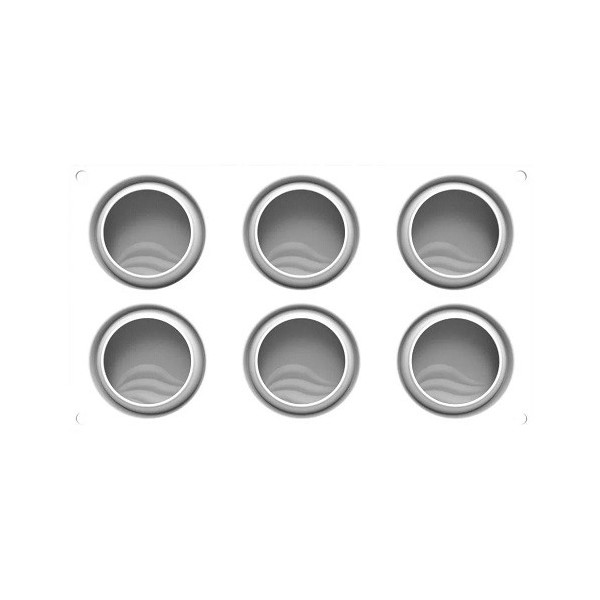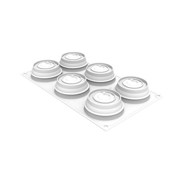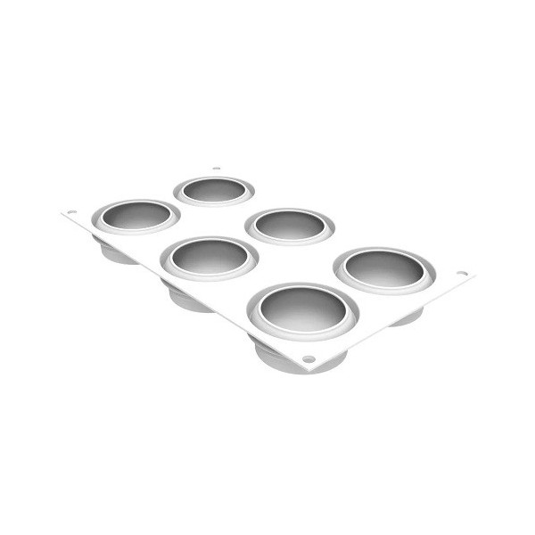 Ocean 100 ml da Silikomart: stampo in silicone bianco per 6 tortine a forma di semisfera con effetto tridimensionale dal diametro di 7,0 cm ed altezza 3,00 cm