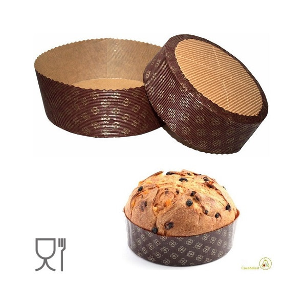 Caratteristiche set 2 stampi panettoni bassi in carta cellulosa calandrata, usa e getta o monouso, da 2 Kg: