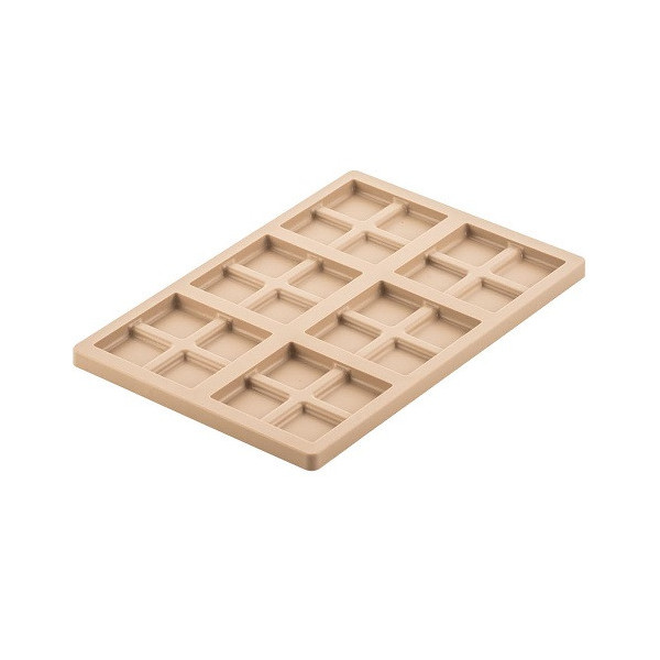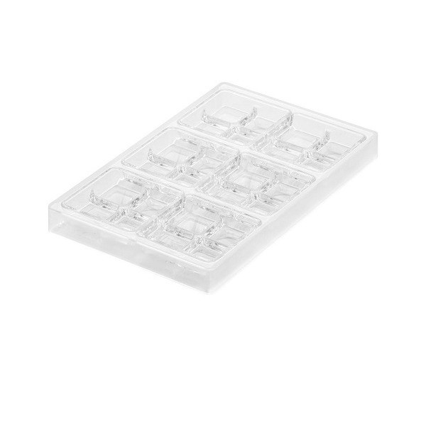Kit Blocco T: stampo in Tritan per 6 tavolette di cioccolato di lato 7,5 x h 1,65 cm di quadri ripieni + stampo silicone per inserti della linea Chocado da Silikomart