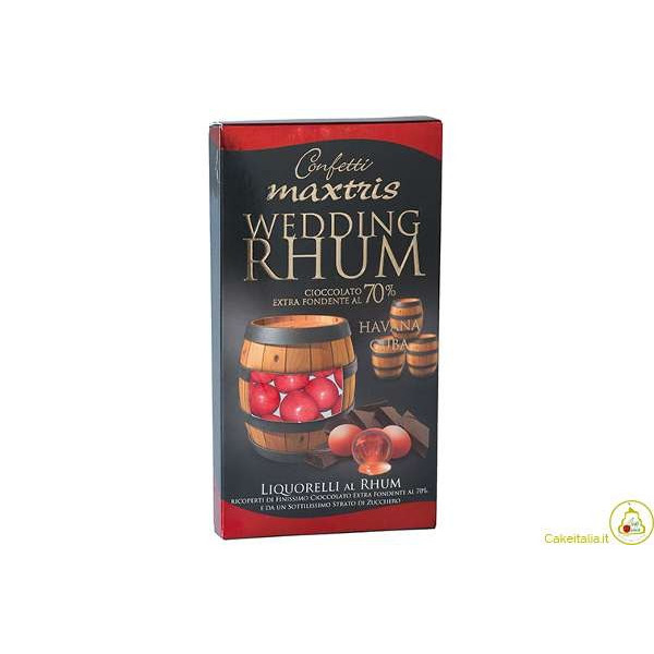 Confetti Wedding Rhum Liquorelli Maxtris Rossi da 500 g: confetti tondi rossi, con cioccolato extra fondente (70% cacao minimo) ripieni di liquore al gusto Rhum.