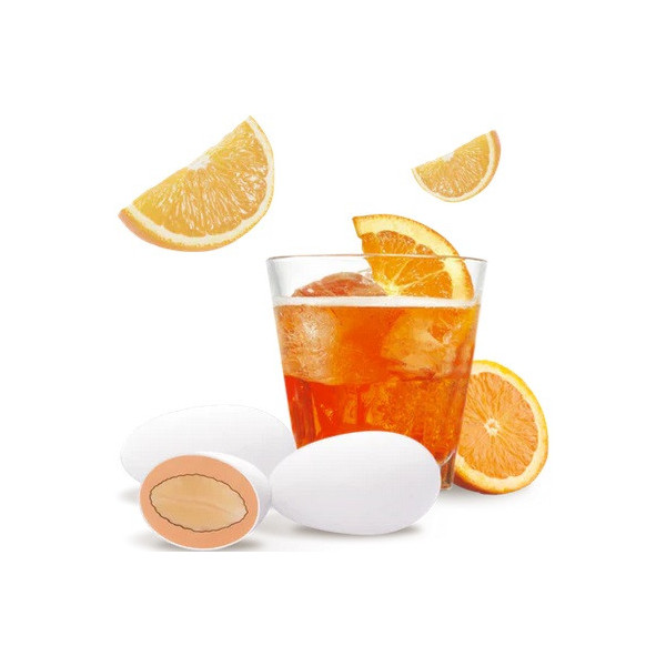 Mandorla tostata ricoperta da cioccolato bianco al gusto Spritz e da un sottile strato di zucchero.