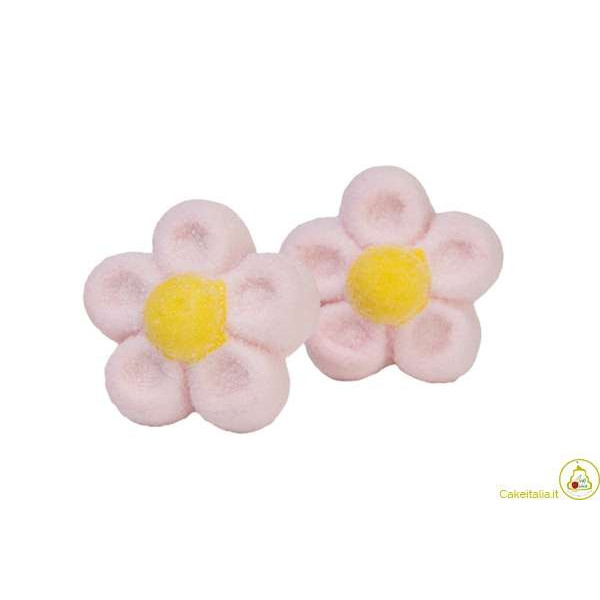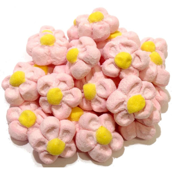 Marshmallow Margherite Rosa sono Marshmallow o chamallows Bulgari a forma di Margherite al gusto di Frutti di Bosco.