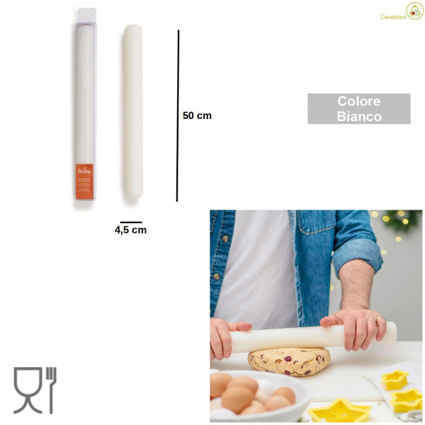 Mattarello liscio ed antiaderente lungo 25 o 50 cm da Decora: matterello in nylon, per lavorazione di pasta di zucchero, pastillage, pasta frolla, cioccolato plastico e ghiaccia reale.