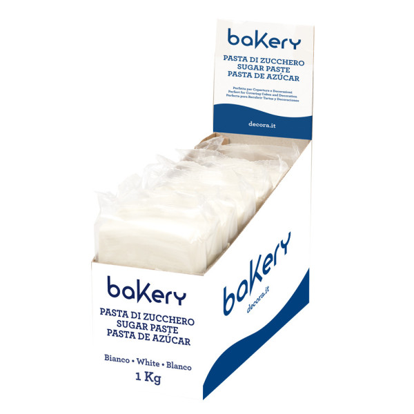 Pasta di zucchero bianca già pronta all'uso per coperture e modellaggio colore Bianca, in formato convenienza e suddivisa in panetti da Decora.