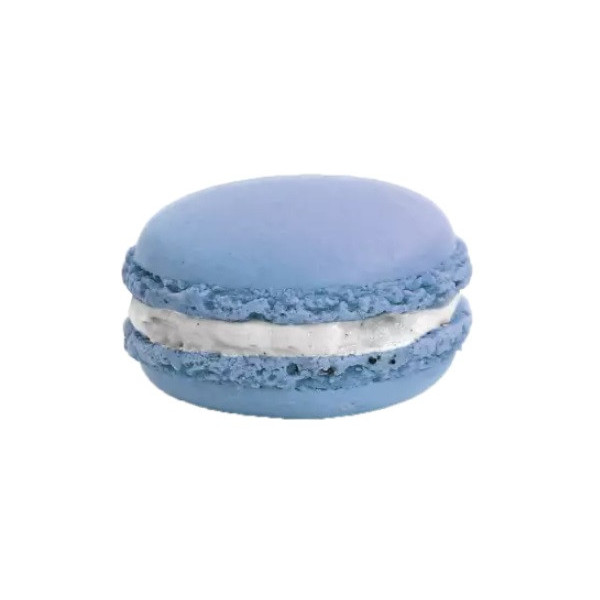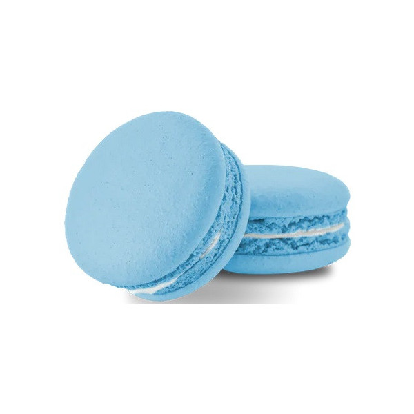 Maxtris Macarons vaniglia in confezione da 5 macarons celesti: due morbide meringhe celesti, con farina di mandorle, che racchiudono un goloso ripieno alla vaniglia da Maxtris Patisserie