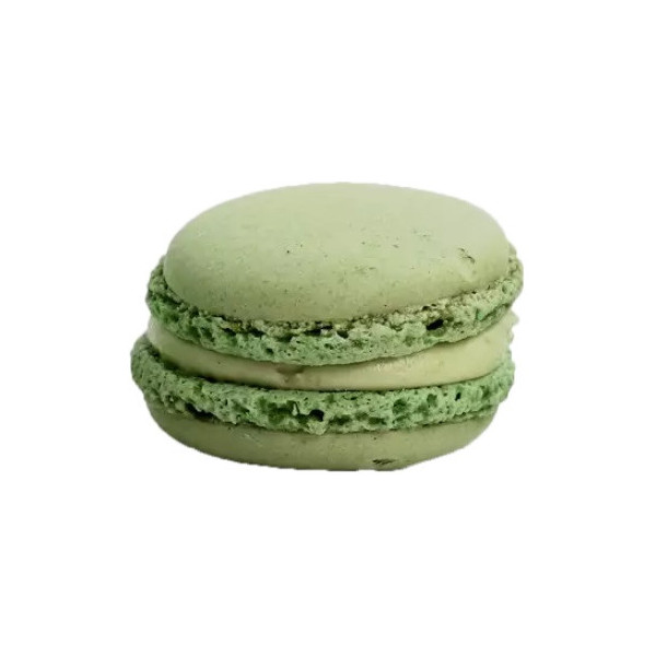 Maxtris Macarons Pistacchio confezione da 5 macarons verdi: due morbide meringhe verdi con farina di mandorle che racchiudono un goloso ripieno al pistacchio, da Maxtris Patisserie.