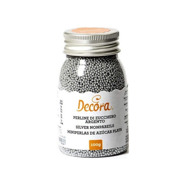 Perline di zucchero color argento da 100 g di Decora: perle per decorazioni in zucchero di ø1,5 a ø8 mm, da cospargere direttamente su torte, cupcakes e biscotti