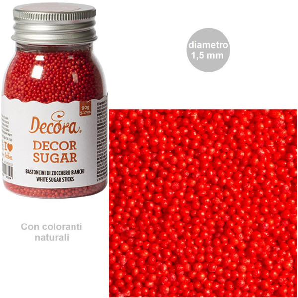 Perline di zucchero rosse, da 100 g e diametro 1,5 mm, linea Decorsugar Decora.