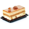 100 Vassoi monoporzioni rettangolari in plastica rigida nera riutilizzabile, con bordino per preservare la fuoriuscita di liquido, da Silikomart. Vassoietti ideali per esporre, trasportare e prelevare dolci monoporzioni.