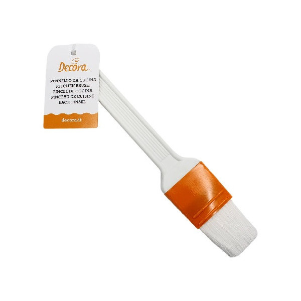 Pennello da 4 o 6 cm Decora; manico in plastica e setole in poliestere fini e morbide, per alimenti, ideale per ungere la pasta, infarinare e oliare gli stampi. Resistente fino a 230° C.