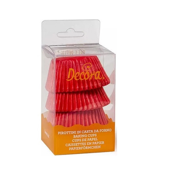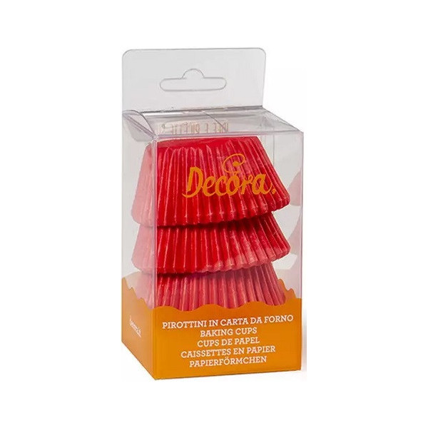 75 Pirottini muffin in carta forno rossa, antiaderente, resistente fino a 220 °C, diametro 5 cm altezza 3,2 cm da Decora. Ideali per cuocere e presentare piccoli dolcetti.