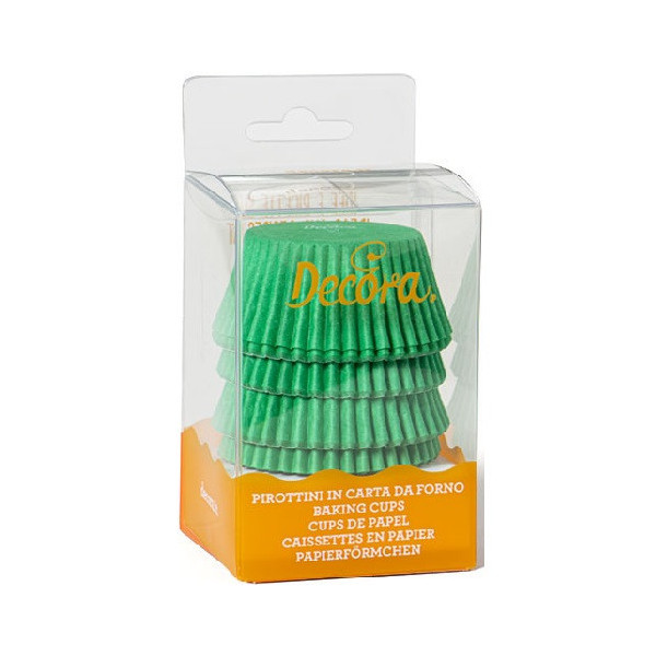 75 Pirottini muffin in carta forno verde, antiaderente, resistente fino a 220 °C, diametro 5 cm altezza 3,2 cm da Decora. Ideali per cuocere e presentare piccoli dolcetti.