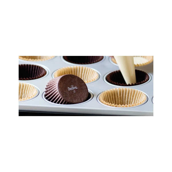 75 Pirottini muffin marroni in carta forno marrone, antiaderente, resistente fino a 220 °C, diametro 5 cm altezza 3,2 cm da Decora. Ideali per cuocere e presentare piccoli dolcetti.
