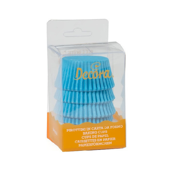 75 Pirottini muffin in carta forno azzurri, antiaderente, resistente fino a 220 °C, diametro 5 cm altezza 3,2 cm da Decora. Ideali per cuocere e presentare piccoli dolcetti.