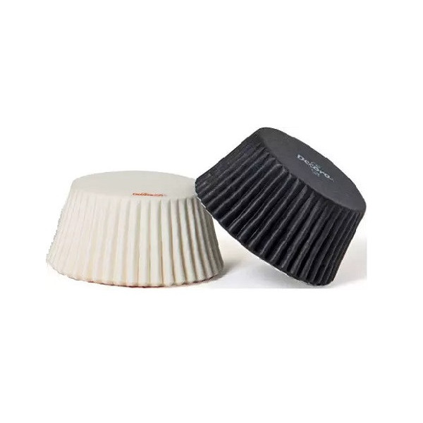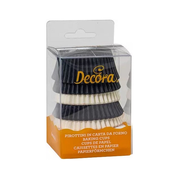 75 Pirottini muffin in carta forno bianca e nera, antiaderente, resistente fino a 220 °C, diametro 5 cm altezza 3,2 cm da Decora. Ideali per cuocere e presentare piccoli dolcetti.