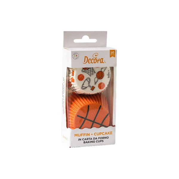 36 Pirottini muffin Basket: carta forno con decori colorati coppa, canestro e pallone da Basket, diametro 5 cm h 3,2 cm da Decora. Ideali per cuocere, presentare e regalare dolcetti.
