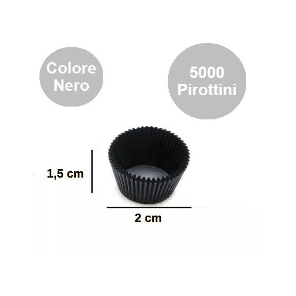 Set di 5000 pirottini mini bon bon in carta forno nera di ø2xh1,5 cm, ideale per presentare singoli confetti Pirottini mini bonbon neri in carta forno di ø2xh1,5 cm ideale per presentare confetti Pirottini mini bonbon neri in carta forno di ø2xh1,5 cm ideale per presentare confetti Set di 5000 pirottini mini bon bon in carta forno nera di ø2xh1,5 cm, ideale per presentare singoli confetti