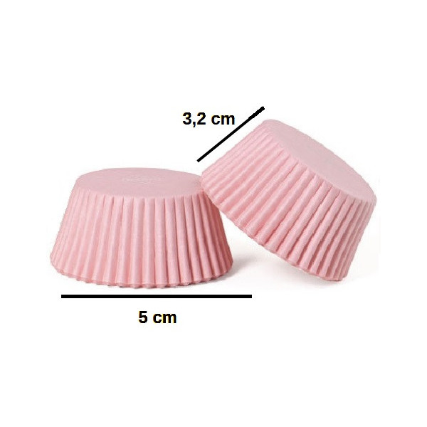 Confezione di 200 pirottini per muffin in carta forno rosa, antiaderente, resistente fino a 220 °C, diametro 5 cm altezza 3,2 cm. Ideali per cuocere e presentare piccoli dolcetti.