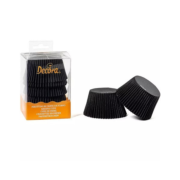 Pratici pirottini per muffin neri in carta forno antiaderente sono resistente fino a 220 °C ed adatti al contatto alimentare.