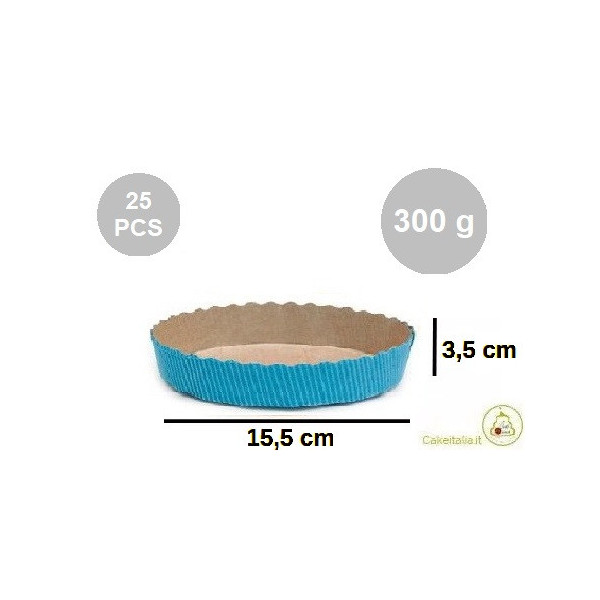 Set 25 Pirottini per torte o crostate grandi da 300 g, diametro 15,5 cm ed altezza 3,5 cm, in carta forno monouso blu.