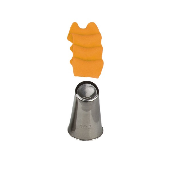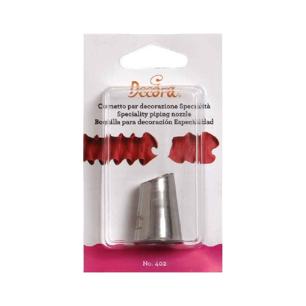 Cornetto speciale n 402 Merletto in acciaio inox Decora: bocchetta per decorazioni a strisce ondulate e merletti su torte e dolci, con crema e panna. Il beccuccio Merletto n 402 è in acciaio adatto all'uso alimentare, senza punti di saldatura, lavabile in lavastoviglie e riutilizzabile.