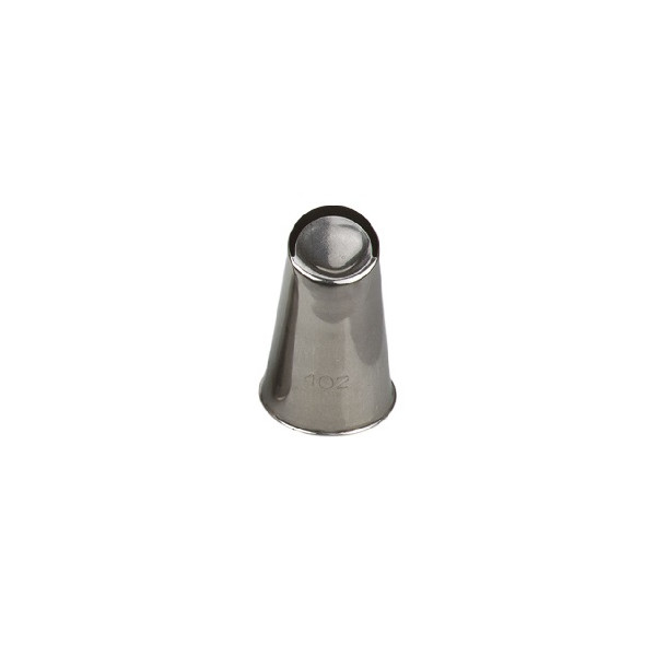 Cornetto foglia con nervatura frastagliata in acciaio inox Ø 3,5 x 4 cm Decora: beccuccio o bocchetta n. 5 per fiori 3D da decorazione diretta su torte e dolcetti, senza punti di saldatura, riutilizzabile.
