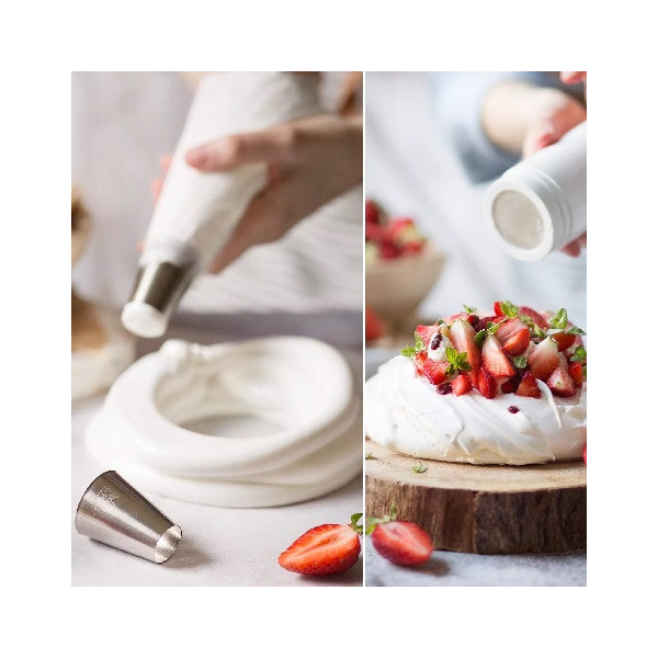 Sac a poche usa e getta sono sacchetti in rotolo (sac a poche) monouso pre-tagliati, trasparenti, lunghi 40 o 46 cm, con la parte esterna antiscivolo e parte interna liscia.