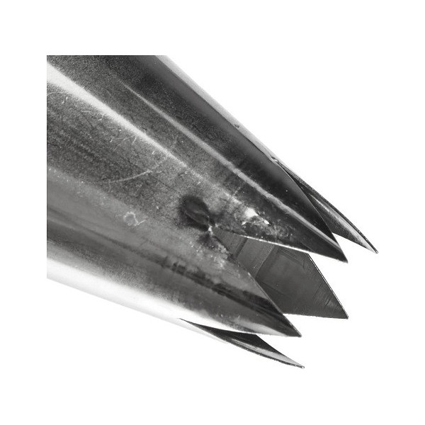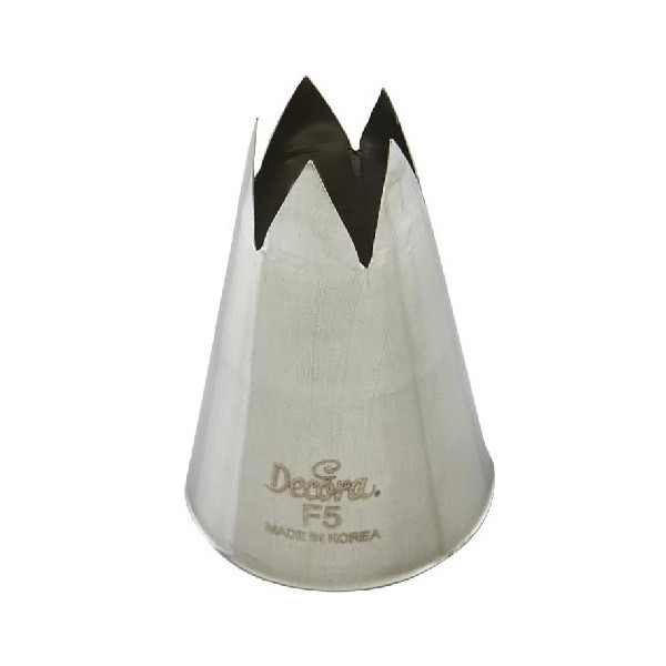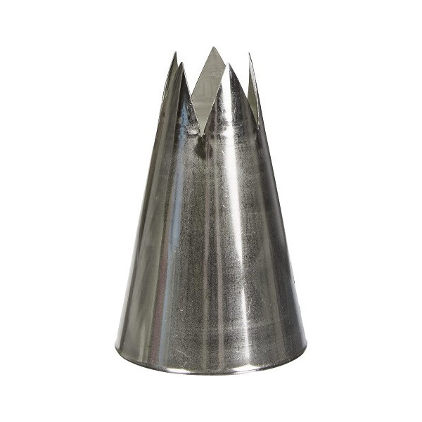 Cornetto Zeppola di San Giuseppe n. F5 in acciaio inox Decora: punta, beccuccio o bocchetta speciale grande a stella aperta ø1,5 cm usala per decorare con tortiglioni di panna, ghiaccia o crene per realizzare le tipiche zeppole.