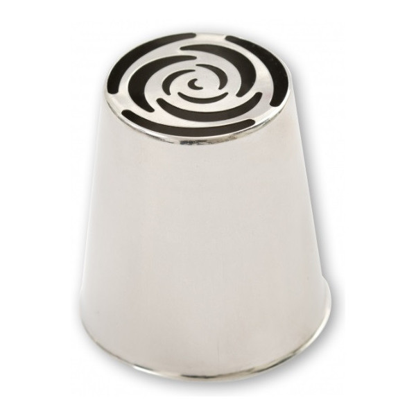 Cornetto Bocciolo di Rosa in acciaio inox Decora: beccuccio o bocchetta n. 243 per fiori 3D da decorazione diretta su torte e dolcetti, senza punti di saldatura, riutilizzabile.