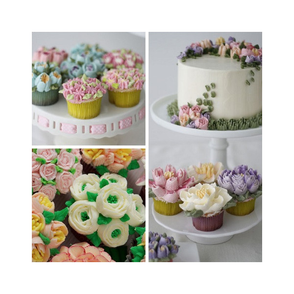 Cornetto per fiori, da decorazione floreali 3D direttamente su torte, muffin, biscotti e dolcetti, senza punti di saldatura, lavabile in lavastoviglie e riutilizzabile, in blister.