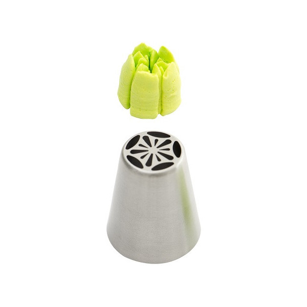 Cornetto Tulipano n. 241 in acciaio inox Decora: beccuccio o bocchetta per fiori 3D da decorazione diretta su torte e dolcetti, senza punti di saldatura, riutilizzabile.