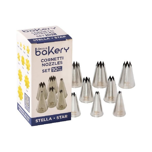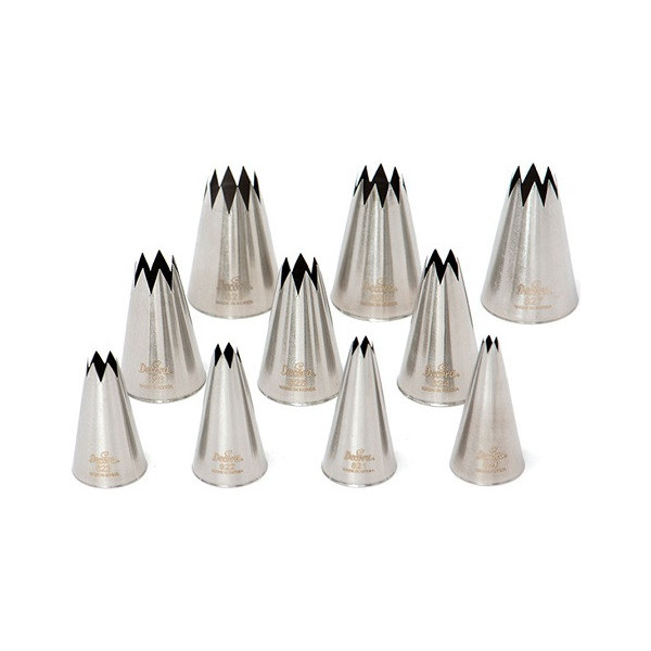 Set 10 cornetti stella in acciaio inox dal diametro 4 a 18 mm Decora: kit di 10 bocchette stella, professionali, senza punti di saldatura, da utilizzare senza adattatore.