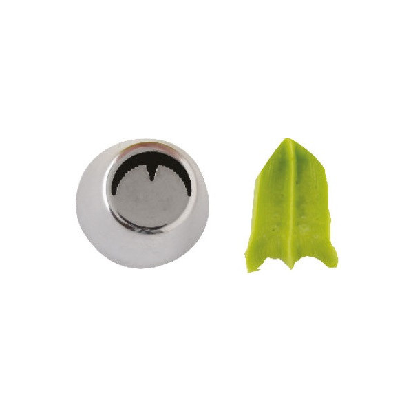 Bocchetta cornetto in acciaio inox, per sac a poche, per realizzare delicate foglie 3d con nervatura frastagliata.