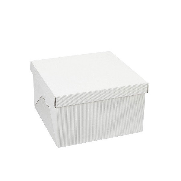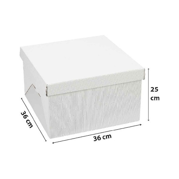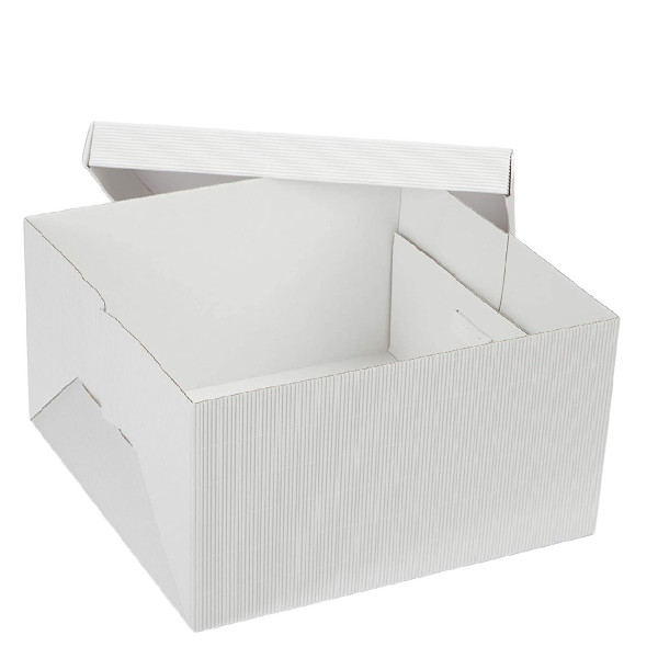 Scatola rigida quadrata, porta torte con coperchio, in cartoncino canneté, rigato, bianco di lato da 36 a 41 cm per uso alimentare, imbustata singolarmente, ideale per trasportare e conservare torte di grandi dimensioni in sicurezza.