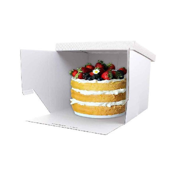 L'apertura laterale consente di inserire la torta senza rischiarne la rottura, la rigidità del cartoncino garantisce il trasporti in sicurezza.