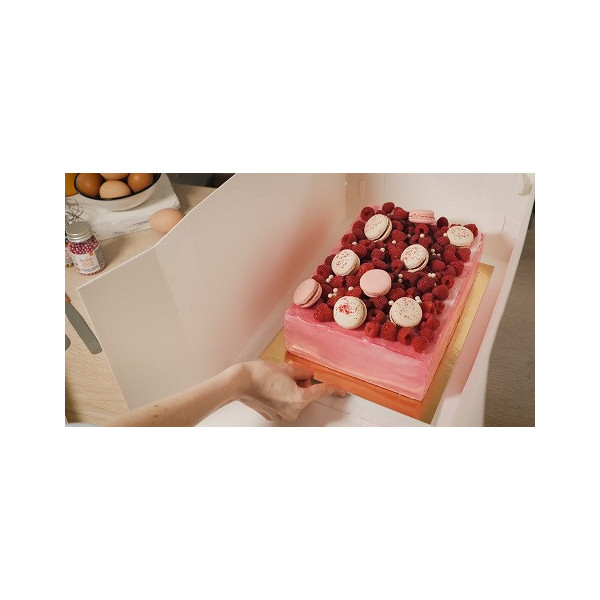 Box torta in cartone per alimenti in microonda di alta qualità, facile e veloce da montare grazie alle alette ad incastro che bloccano le pareti rendendo la scatola molto stabile.