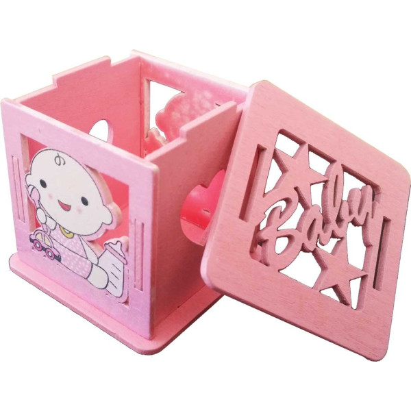 Scatolina portaconfetti in legno Nascita Bimba Rosa