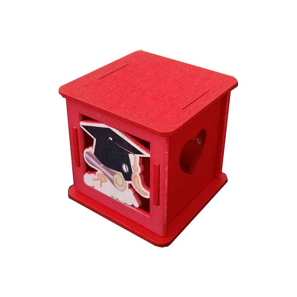 Scatolina bomboniera a forma di cubo in legno di lato 5,5 x 5,5 x 5,5 cm, ideale portaconfetti rosso per laurea.