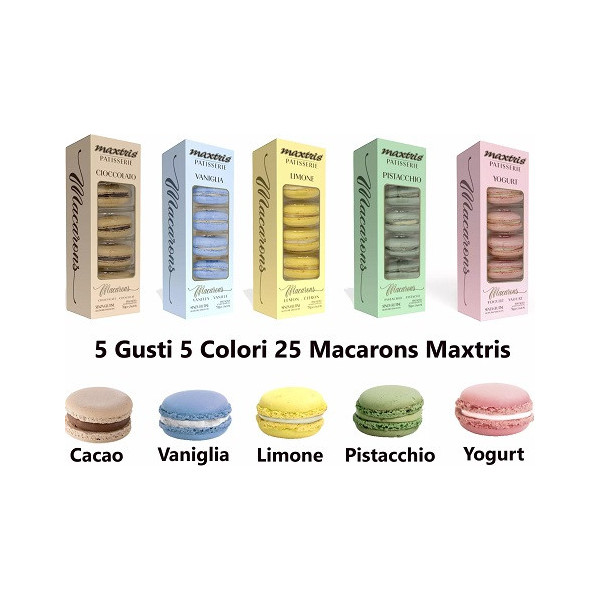 Kit Maxtris Macarons i macarons di Maxtris suddivisi in 5 gusti e 5 colori.