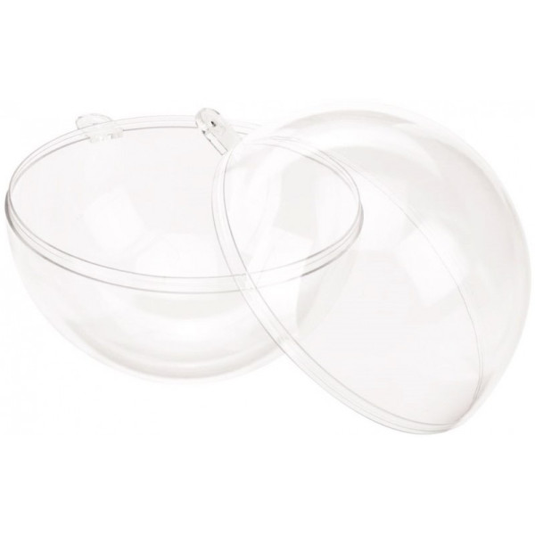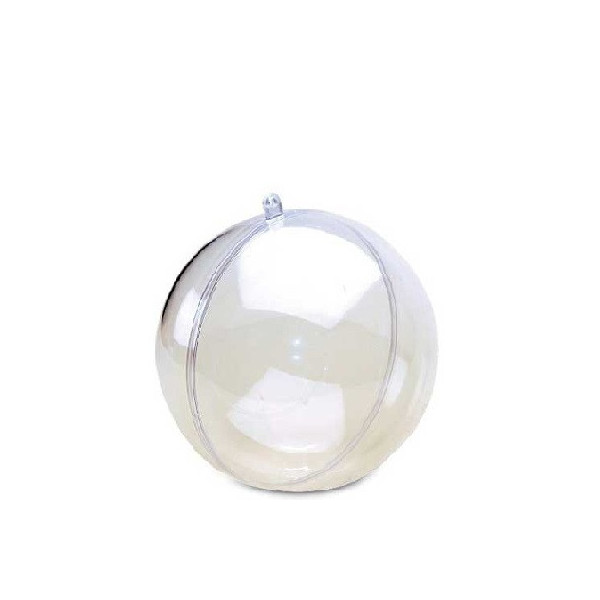 Pallina o sfera in plexiglas apribile da 6 o 8 cm. Sfera con chiusura ad incastro, usala come scatolina portaoggetti, ideale da decorare, confezionare ed appendere.