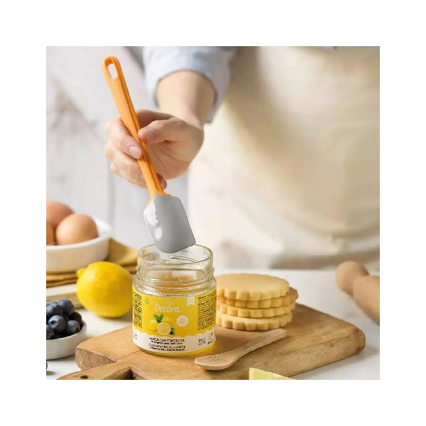 Cucchiaio silicone 21 o 27,5 cm, Decora: utensile cucina con manico ergonomico in plastica a forma di cucchiaio con bordo morbido, flessibile ed arrotondato, indispensabile in pasticceria.