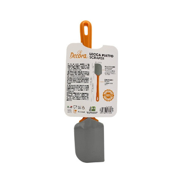 Spatola Lecca Piatto in silicone da Decora, larga 6 cm, lunga 27,5 cm: spatola, 6x8 cm in morbido silicone grigio, con manico ergonomico, in plastica da 18,5 cm