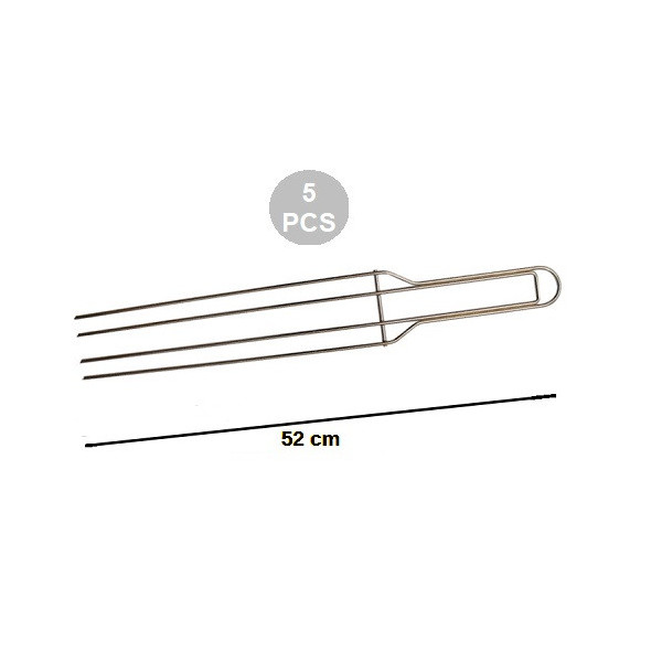 Kit da 5 spiedini o spilloni 4 punte in acciaio per panettoni e colombe di 52 cm, di Decora. Spilloni in acciaio ideali per dolci lievitati raffreddati a testa in giù.