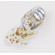 Mix di decorazioni a tema natalizio, con alberelli, stelline, sferici, codette nei colori oro e bianco