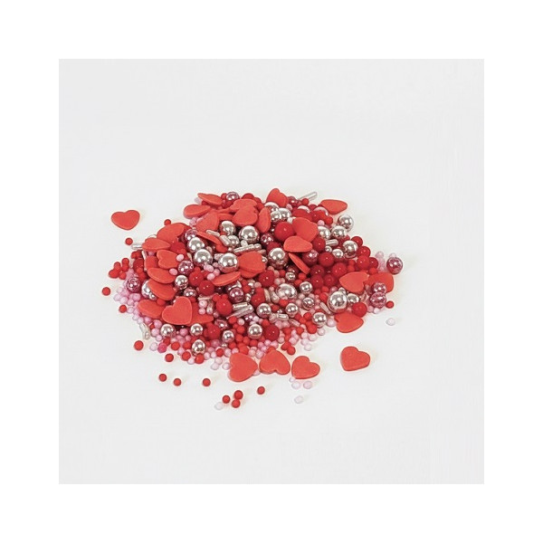 Sprinkles Mix Sweet Heart da 90 g Madma: mix di decorazioni a tema Cuore, con cuoricini, sferici, codette nei colori argento rosso rosa e bianco